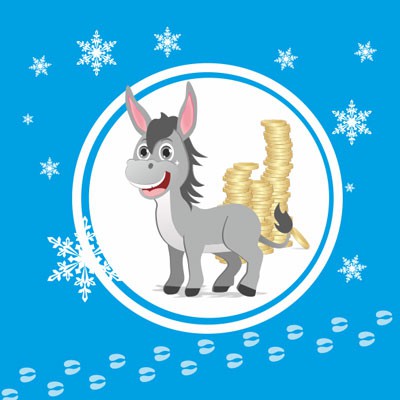 „Klar“, sagt der Esel. „Wenn ich an Weihnachten gaz viel Geld geschenkt bekomme, dann spüre ich das wahre Weihnachtsglück."